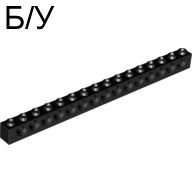 ! Б/У - Technic, Brick 1 x 16 with Holes, Black (3703 / 370326) - Б/У