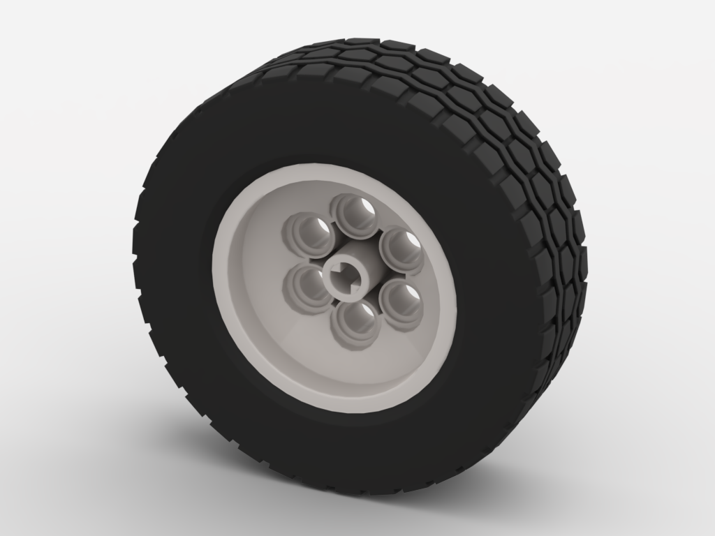 Wheel 43.2mm D. x 18mm - Extended Axle Stem with Black Tire 62.4 x 20 S 32020 / 32019, (арт. 32020c01) , цвет White / Оригинальная деталь LEGO (Дания). 1 шт