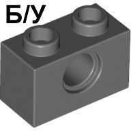 Б/У - Technic, Brick 1 x 2 with Hole, (арт. 3700 4211111) , цвет Dark Bluish Gray / Оригинальная деталь LEGO (Дания). 1 шт