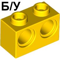 Б/У - Technic, Brick 1 x 2 with Holes, (арт. 32000 3200024 4160860 4201615) , цвет Yellow / Оригинальная деталь LEGO (Дания). 1 шт