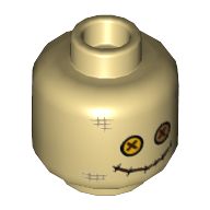 Minifigure, Head Dark Tan Hashmarks, Bright Light Orange and Medium Nougat Button Eyes, Stitched Mouth Scarecrow Pattern - Hollow Stud, Tan (3626cpb2289 / 6251344)