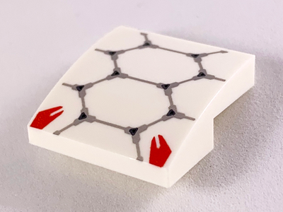 Slope, Curved 2 x 2 x 2/3 with Light Bluish Gray Scale Armor Outlines and Red Highlights Pattern, White (15068pb195 / 6266986)