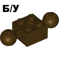 Б/У - Technic, Brick Modified 2 x 2 with 2 Ball Joints and Axle Hole, (арт. 17114 6092731) , цвет Dark Brown / Оригинальная деталь LEGO (Дания). 1 шт