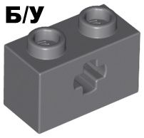 Б/У - Technic, Brick 1 x 2 with Axle Hole, (арт. 32064 4210935 6178919) , цвет Dark Bluish Gray / Оригинальная деталь LEGO (Дания). 1 шт