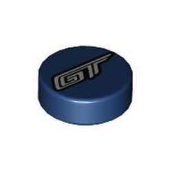 Tile, Round 1 x 1 with Silver 'GT' Pattern, Dark Blue (98138pb368 / 6426364)