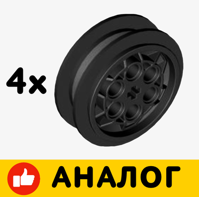 Wheel 43.2mm D. x 18mm - Flush Axle Stem/ AN LOT, (арт. 86652) , цвет Black / Оригинальная деталь LEGO (Дания). Лот 4 шт.