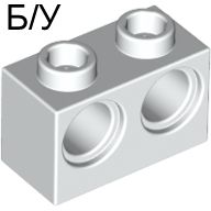 Б/У - Technic, Brick 1 x 2 with Holes, (арт. 32000 3200001) , цвет White / Оригинальная деталь LEGO (Дания). 1 шт
